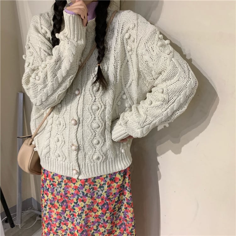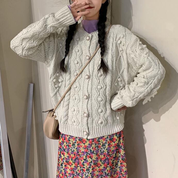 【__s.k000さん着用】ポンポンアランニットカーディガン