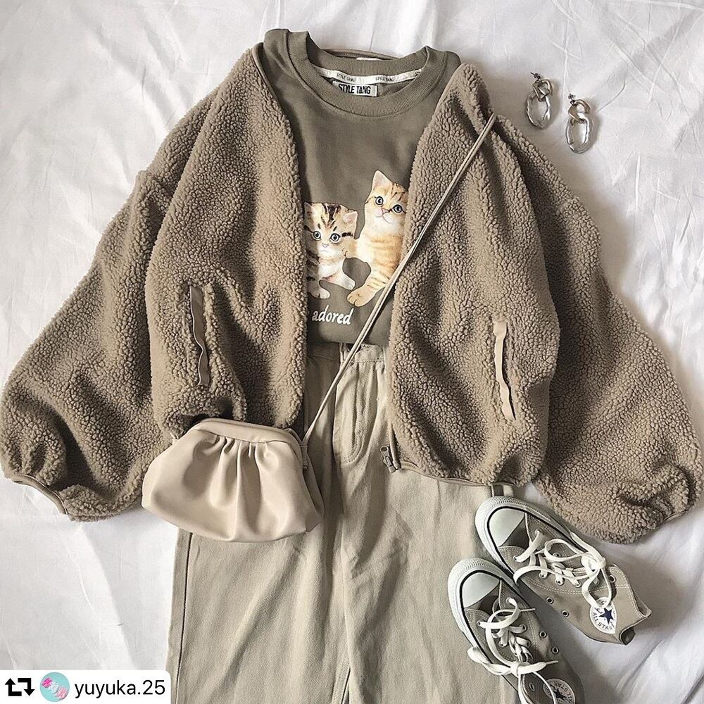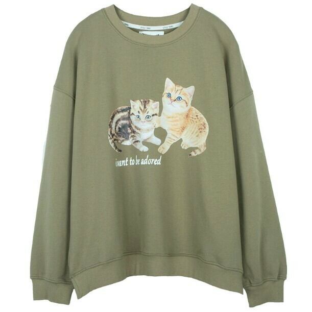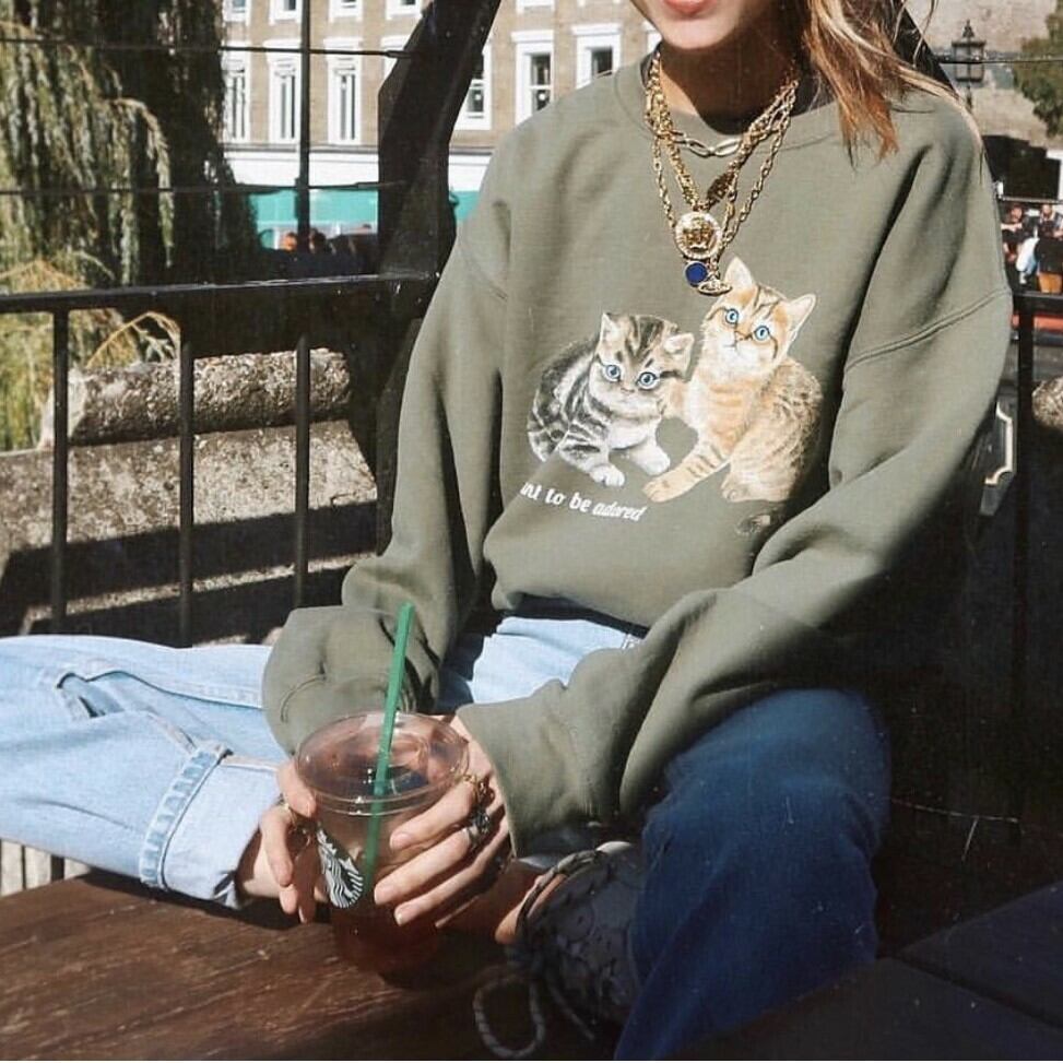 【yuyuka.25さん着用】キャットプリントオリーブグリーンスウェット