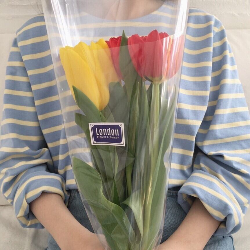 コットンボーダーストライプシャツ / ライトブルー × アイボリー