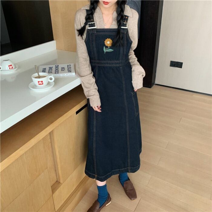 【hinata_official__さん着用】デイジーフラワーデニムストラップドレスワンピース