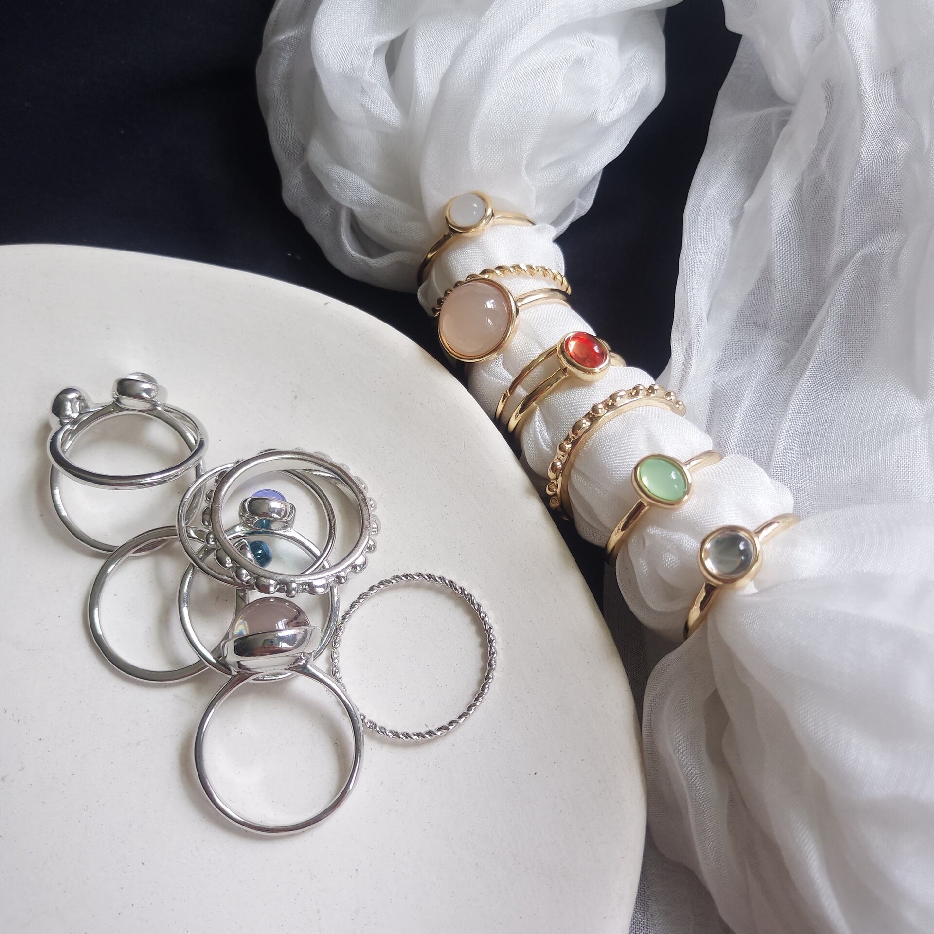 レトロジュエリーリング 8ピースセット / silver・gold