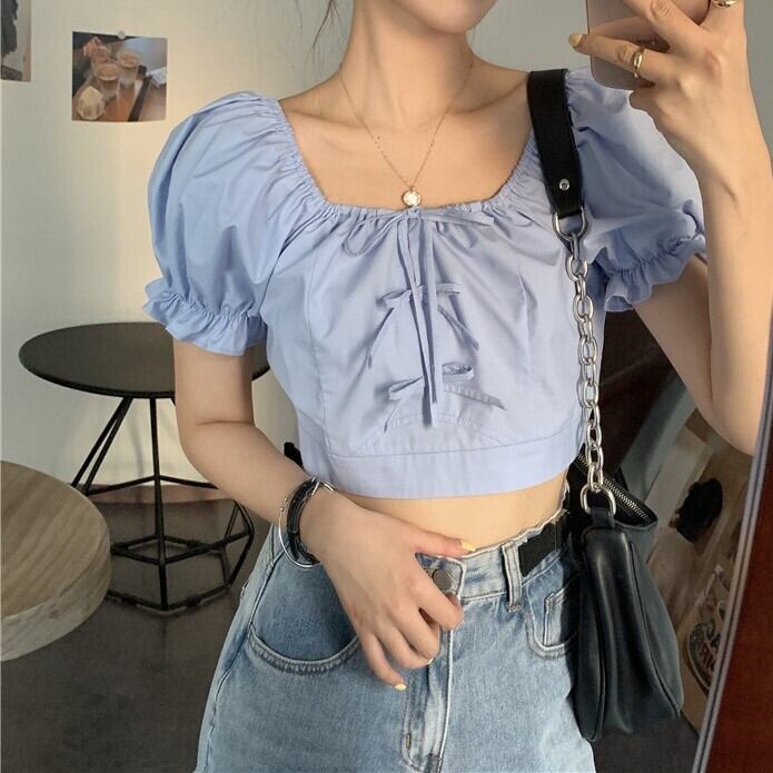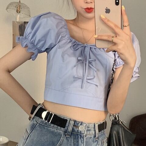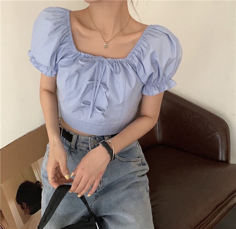 【rinya5588さん着用】フロントリボンパフスリーブトップス / 2カラー