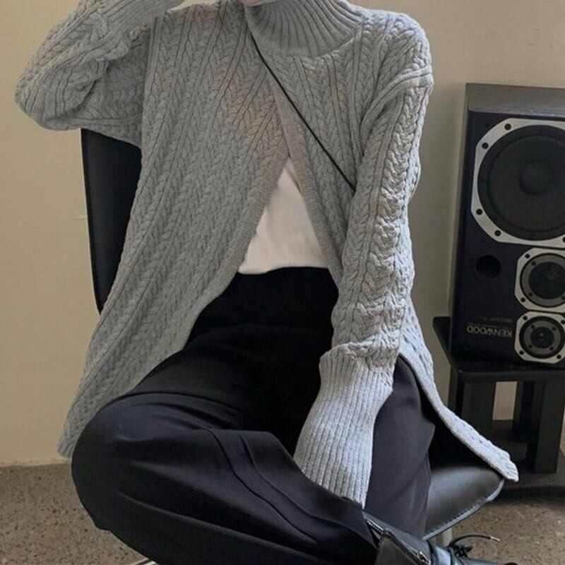 スプリットフロントハイネックニットプルオーバー / 2カラー