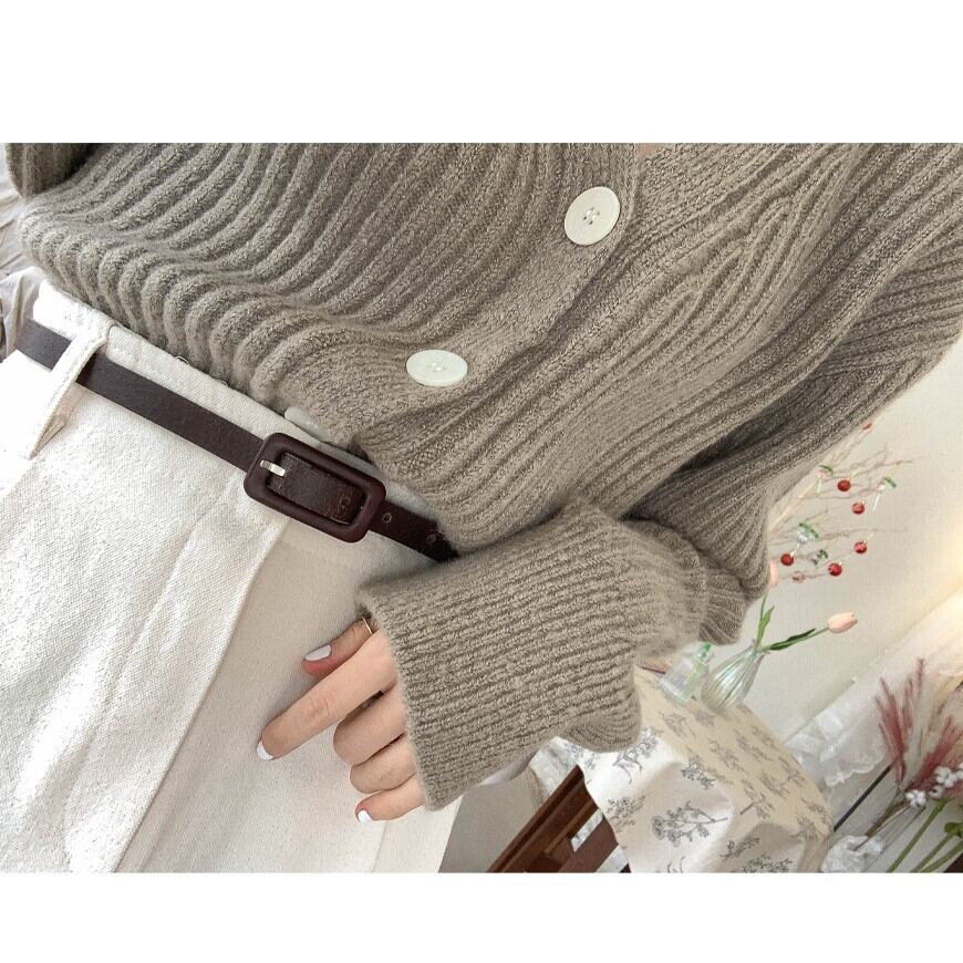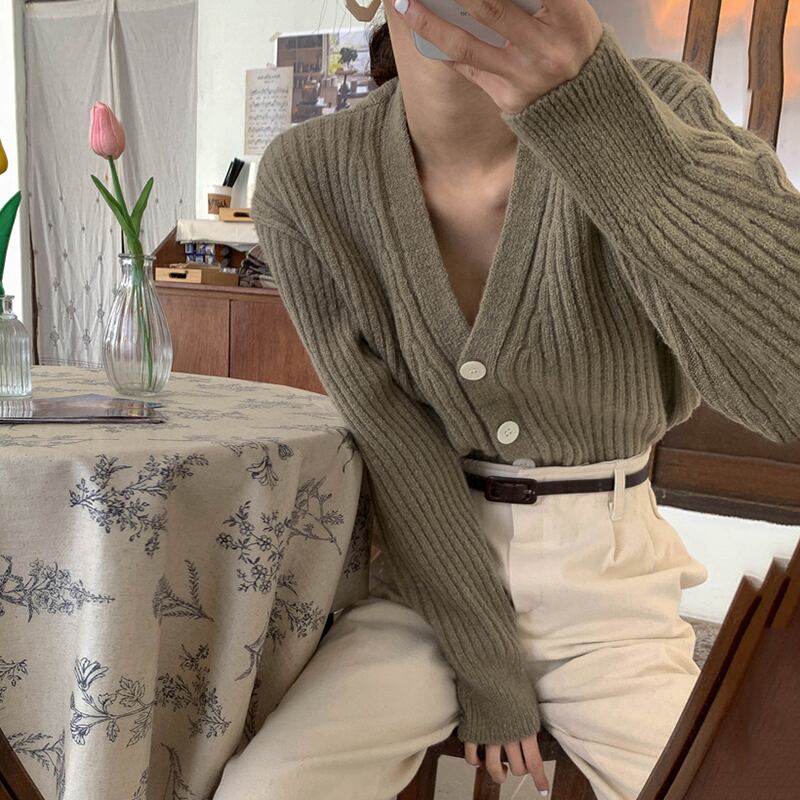 ゆるっと着られるリブ編み素材がリラックス感のあるニットカーディガン。