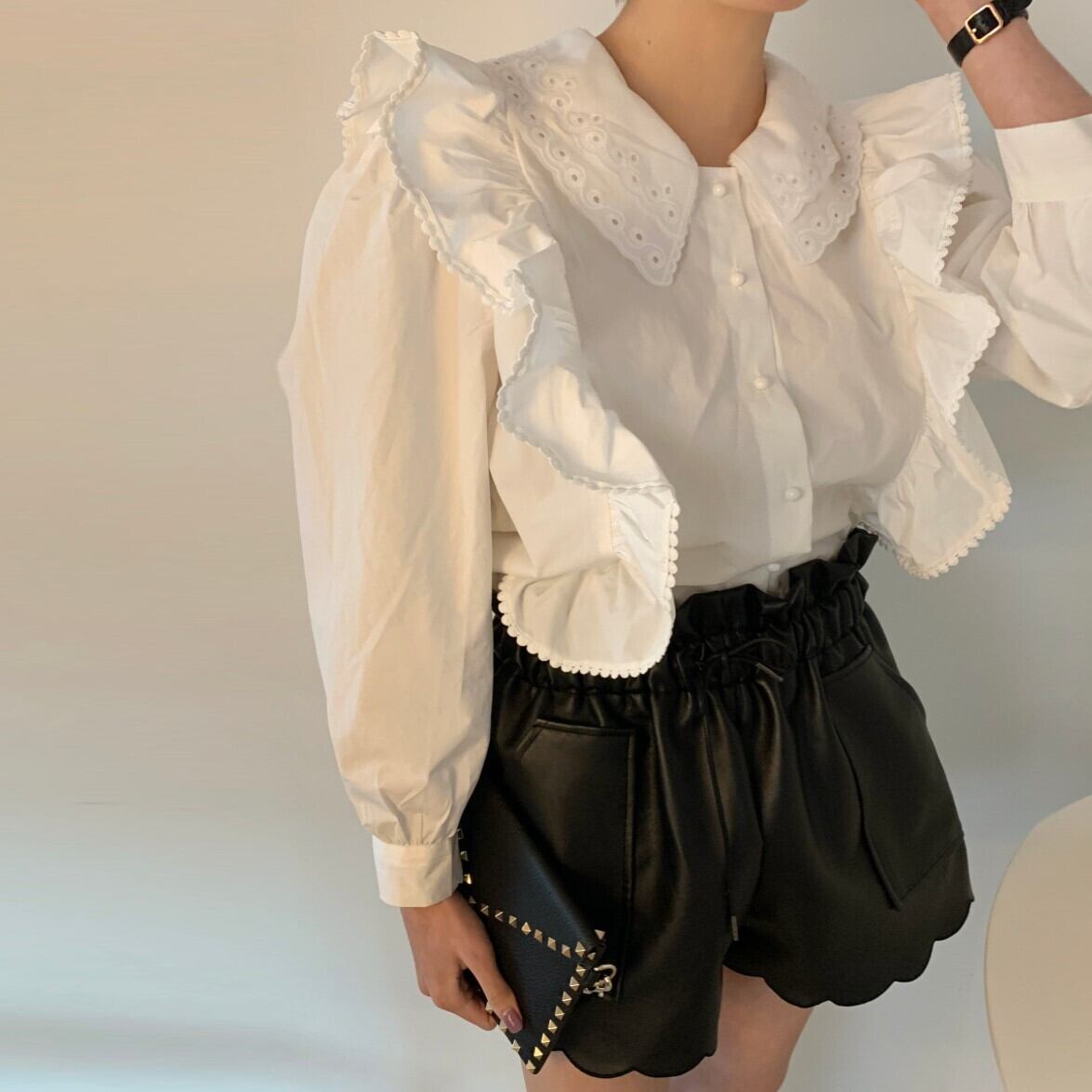 ダブルカラーフリルブラウス / 2カラー