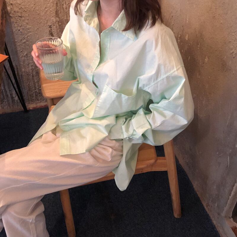 柔らかな春の印象のパステルカラーロングスリーブシャツ。