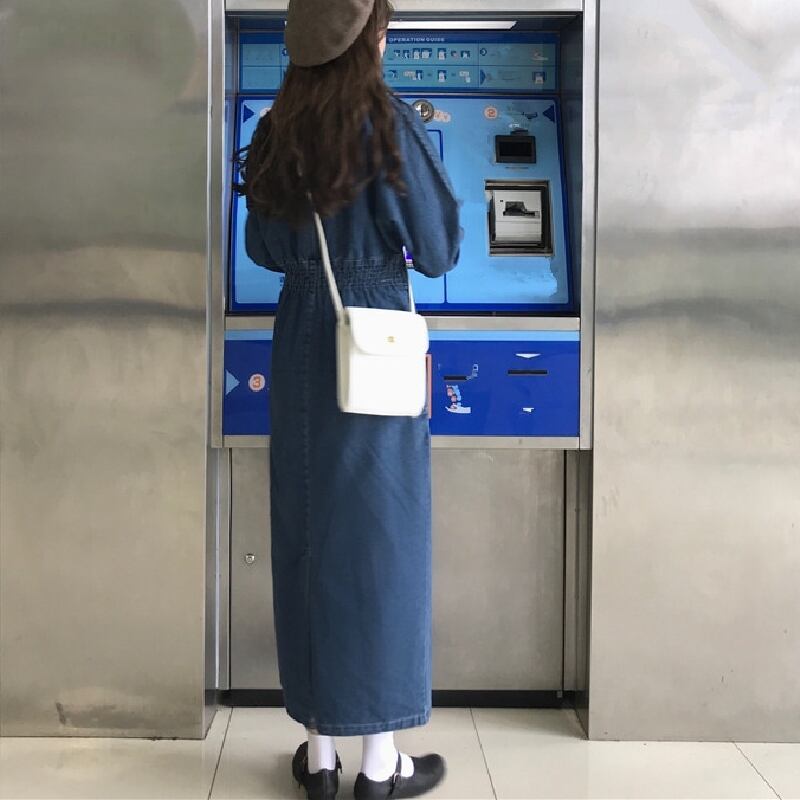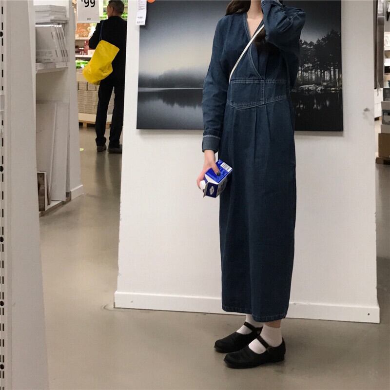 Vネックデニムワンピース