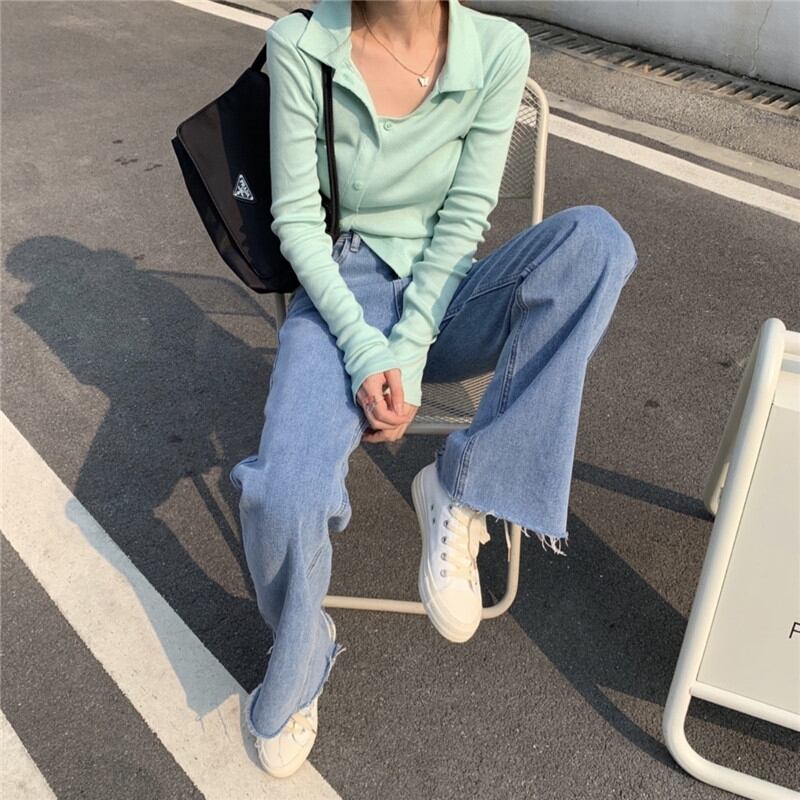 脚のシルエット綺麗にきまる、フレアデニムジーンズパンツ。