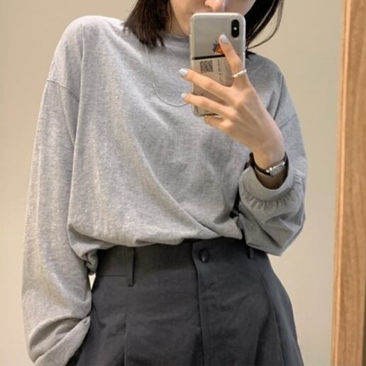 グレーシンプルロングTシャツ