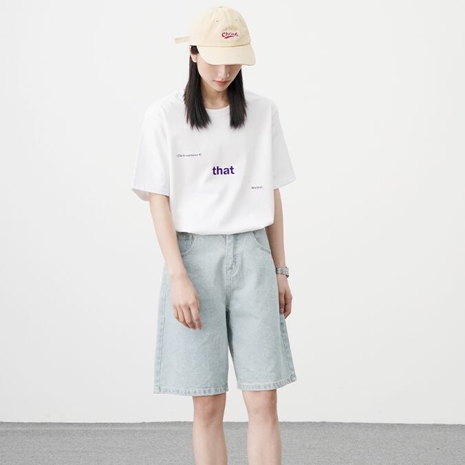 春夏シーズン、ゆったりとしたスタイルで着こなせるグラフィックプリントボーイフレンドTシャツ。