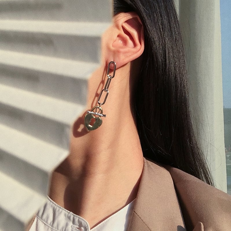 ハートロックチェーンイヤリング・ピアス / 2カラー