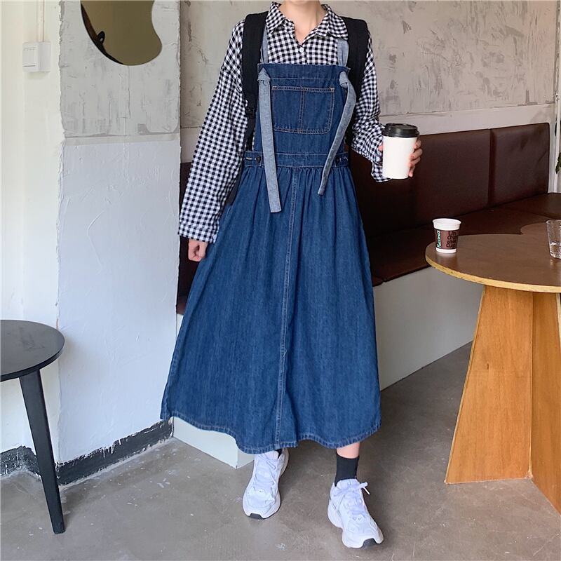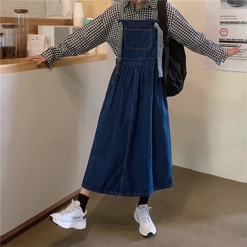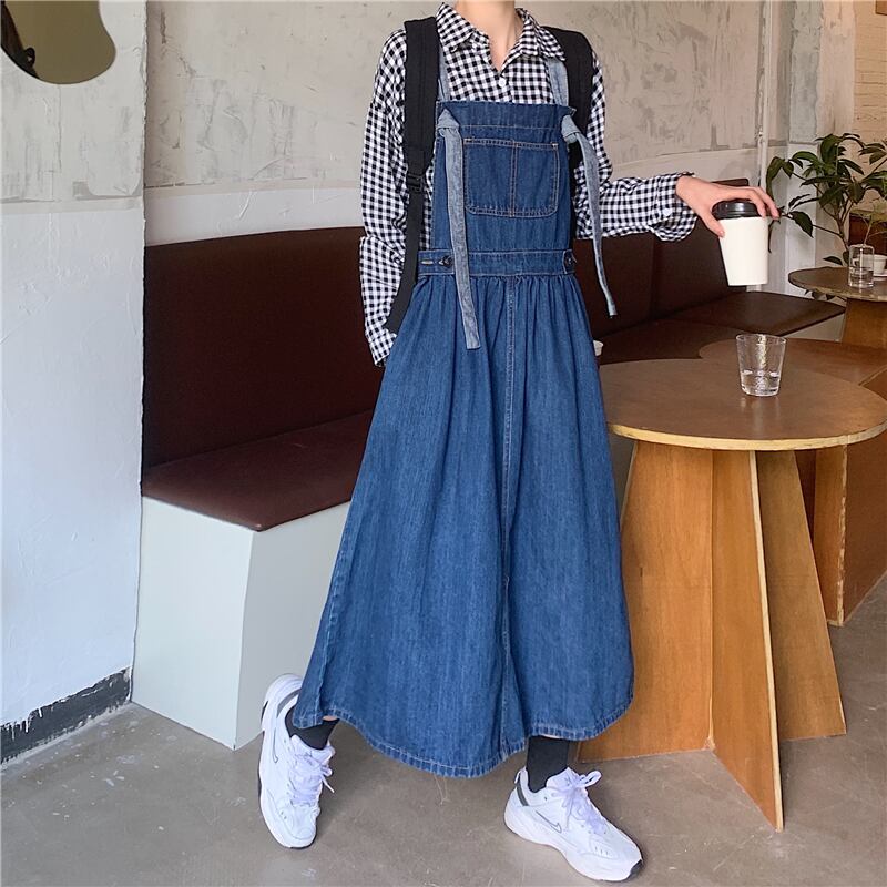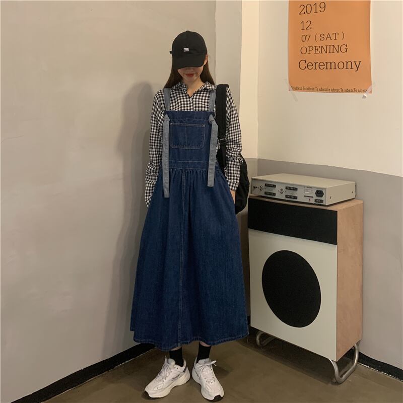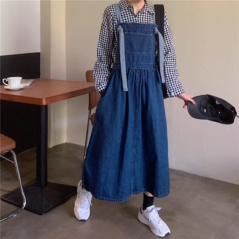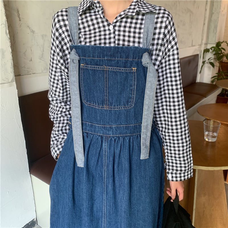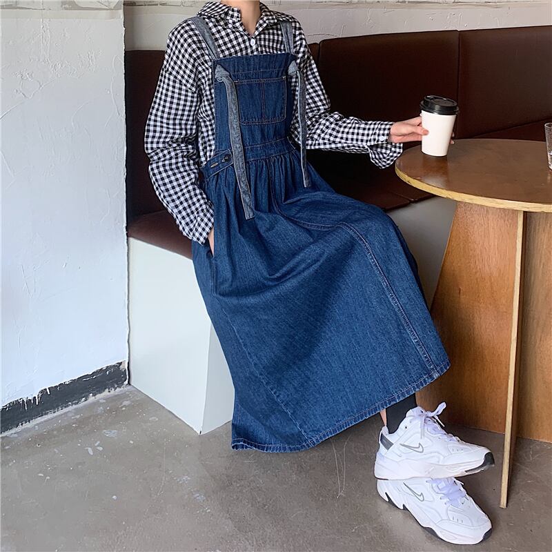 ロングストラップデニムワンピース