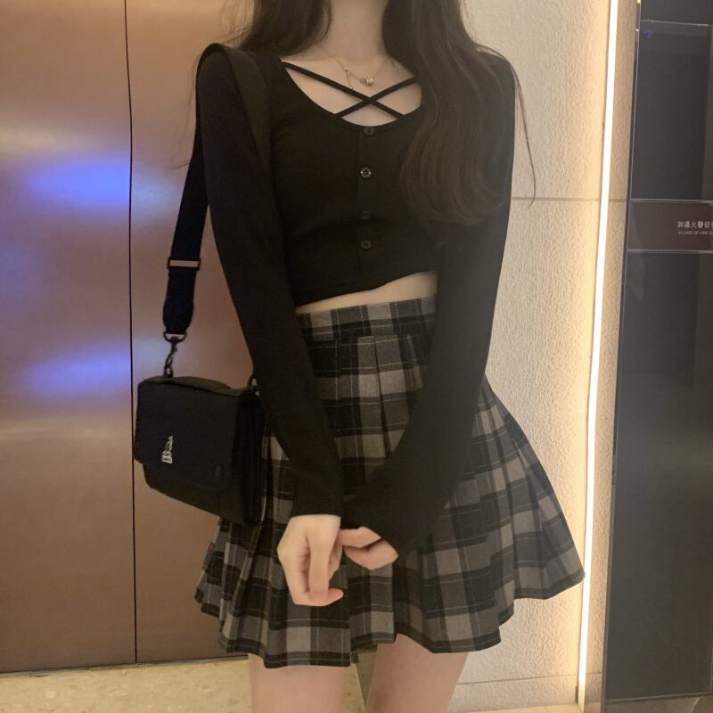 ボディーラインに沿うクロップ丈と、胸元のクロスのストラップがヘルシーなトップスです。