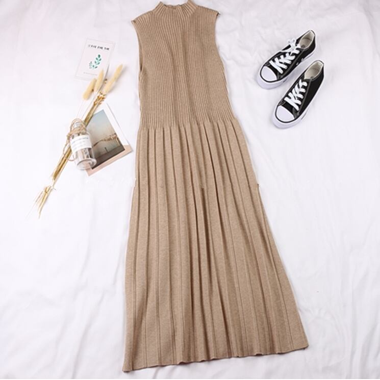ハーフハイネックとノースリーブが絶妙なバランスの、プリーツニットワンピース です。