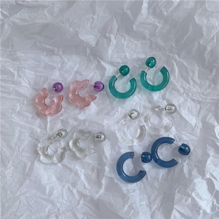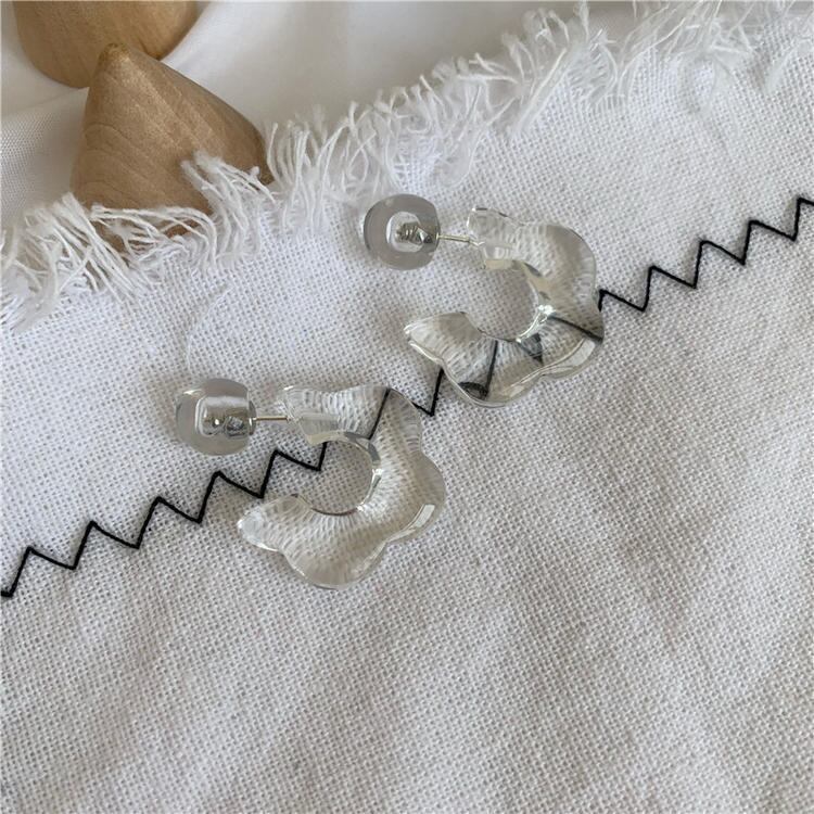 アクリルの透明感とフラワーシェイプのデザインが夏らしい存在感のあるピアス。