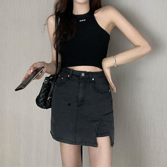 ハイウエストカラーデニムスカートパンツ / 2カラー