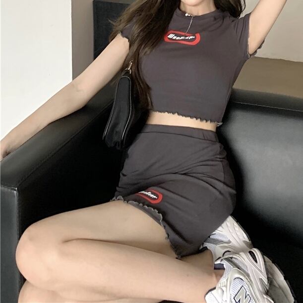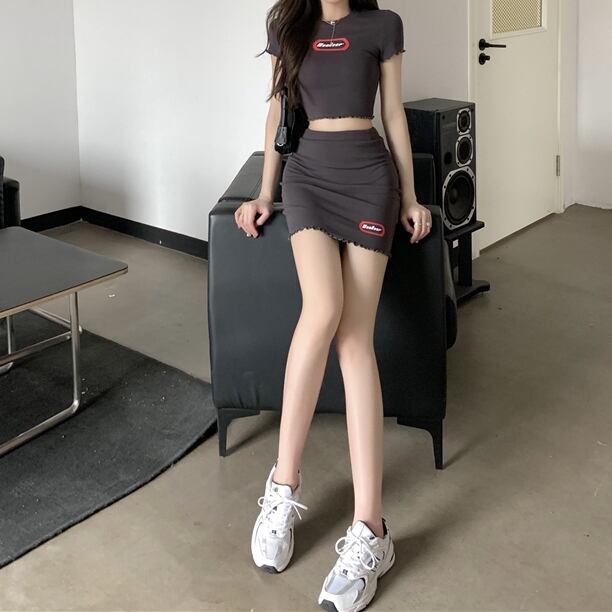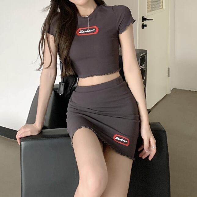 ハイウエストジャージーTシャツ&ミニスカート セットアップ