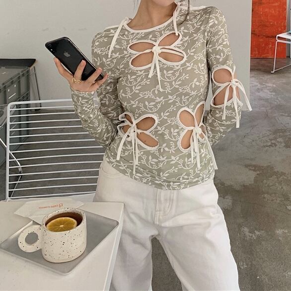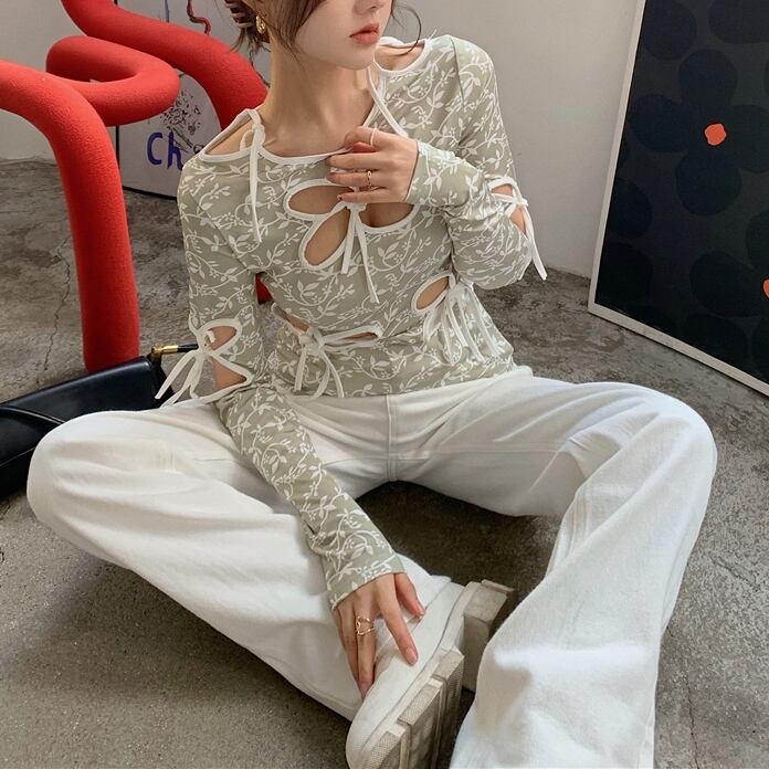 大胆なカットアウトとレースアップデザインがニッチなロングTシャツ。