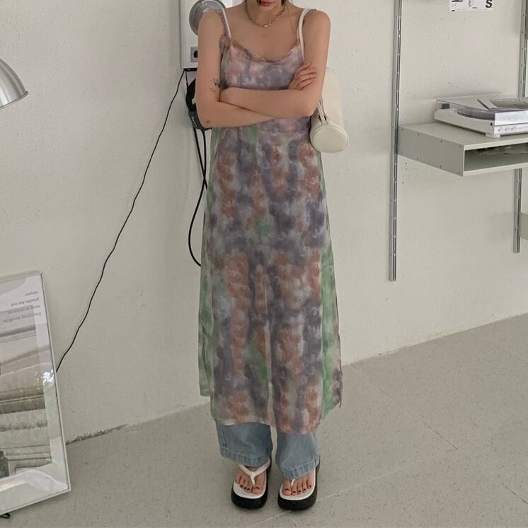 トレンドのタイダイ柄が目を引く人気のシアーキャミワンピース。