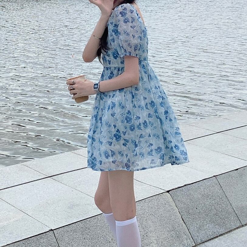 ボリュームのあるパフスリーブと、背中のスクエアネックが特徴のシアーワンピース。