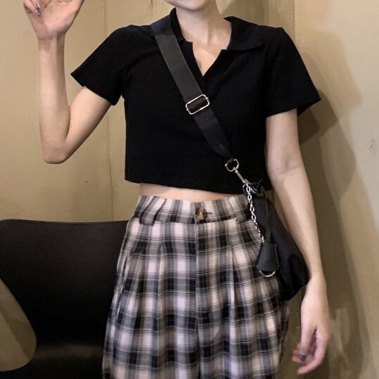 ポロ襟がクールな印象のクロップドトップス。