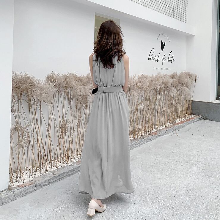 ホルターネックが上品な大人の女性の雰囲気を漂わせてくれるドレープロングワンピース。