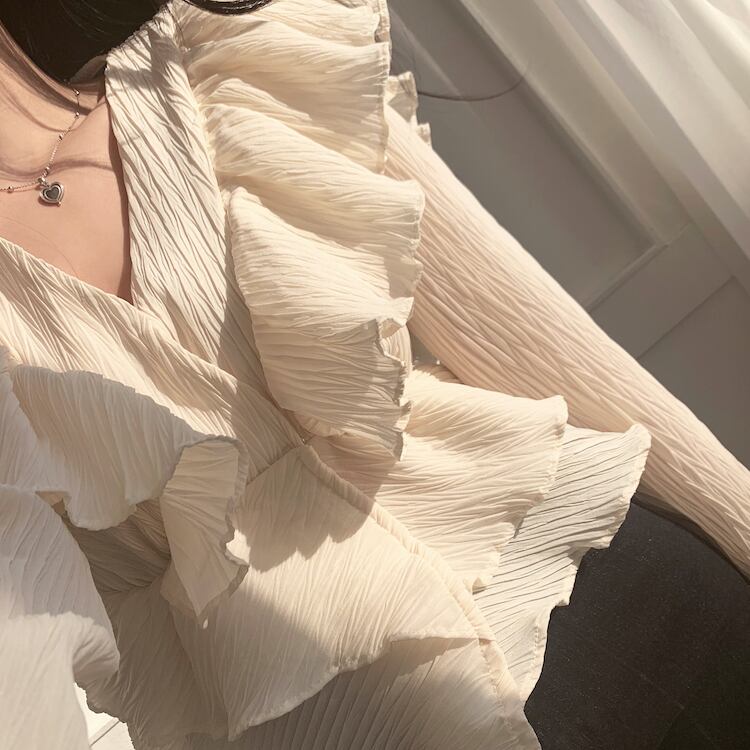 Vネックフリルフレアスリーブクロップドトップス / 2カラー