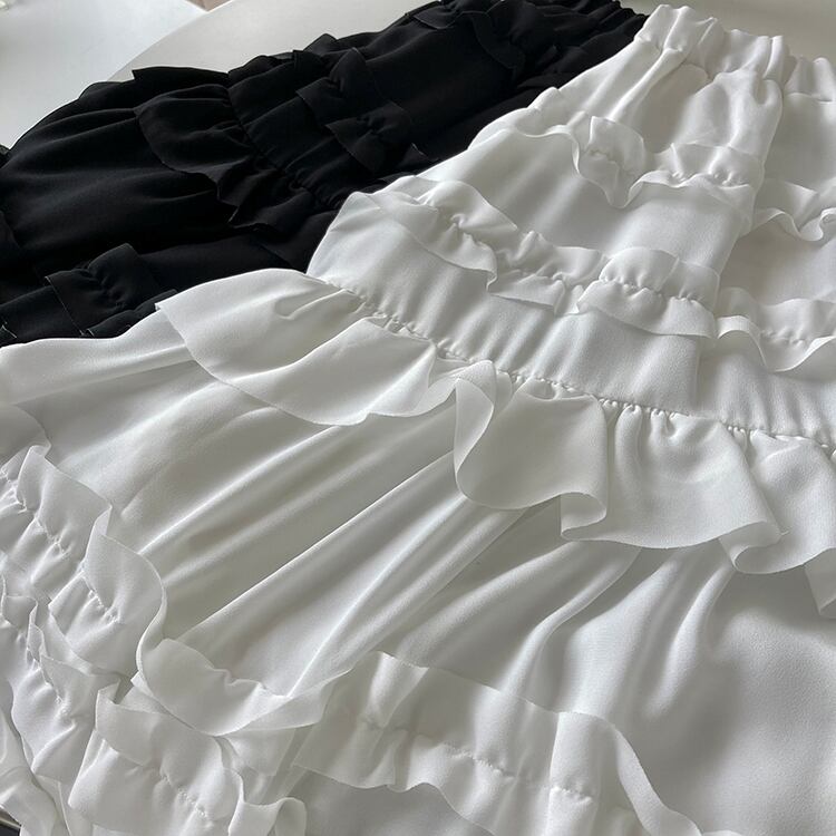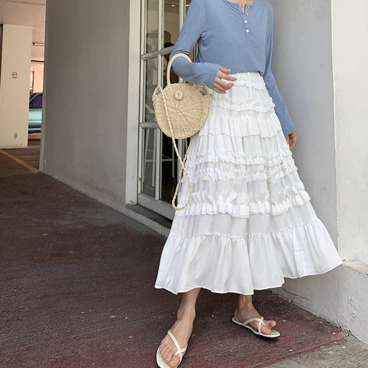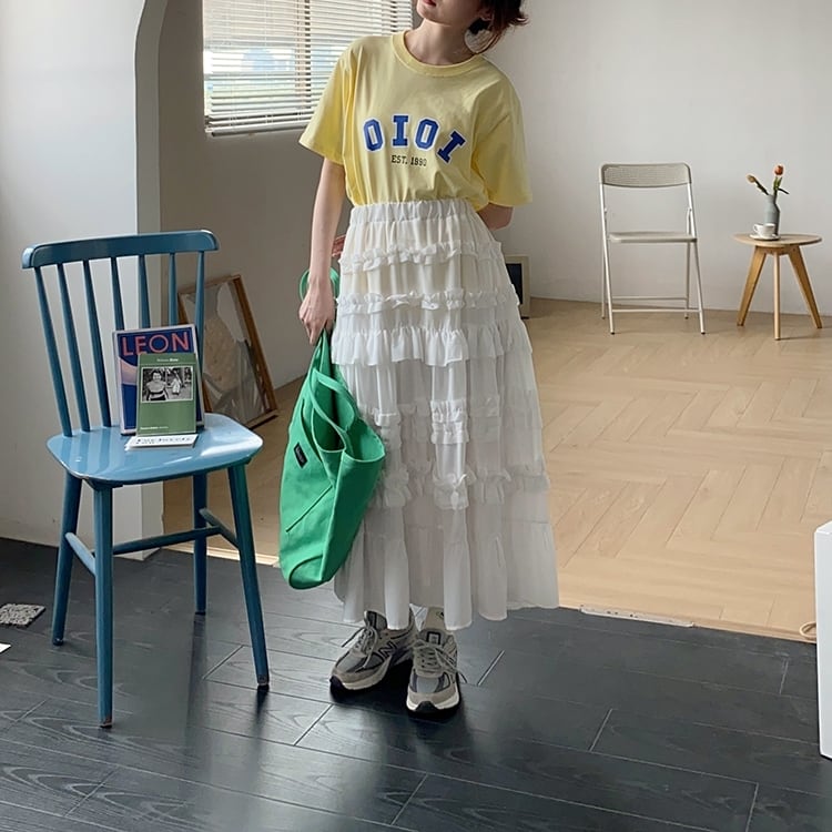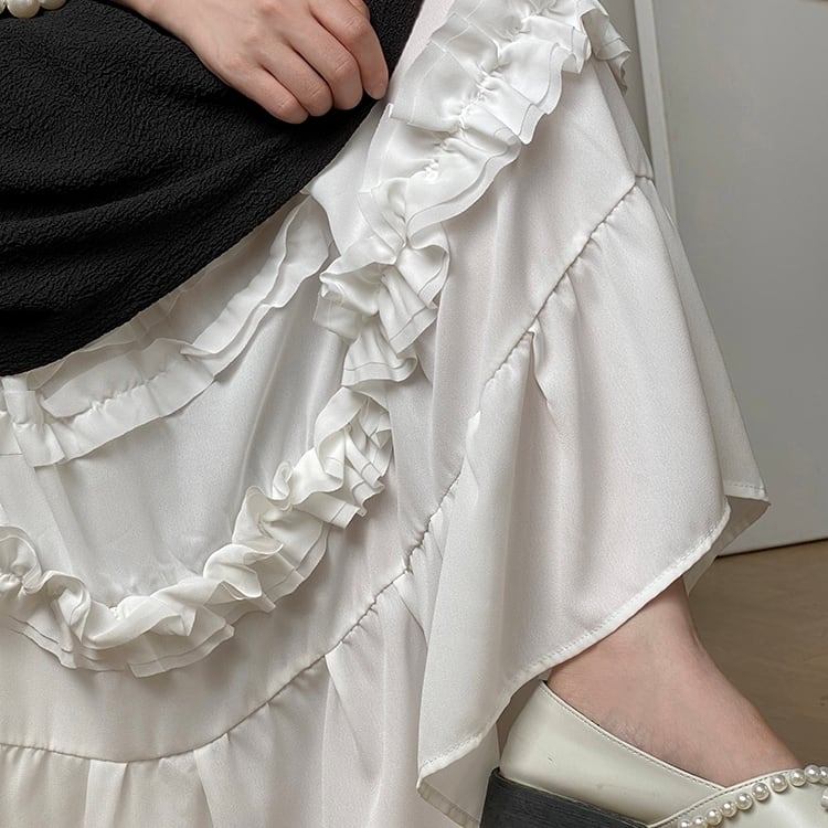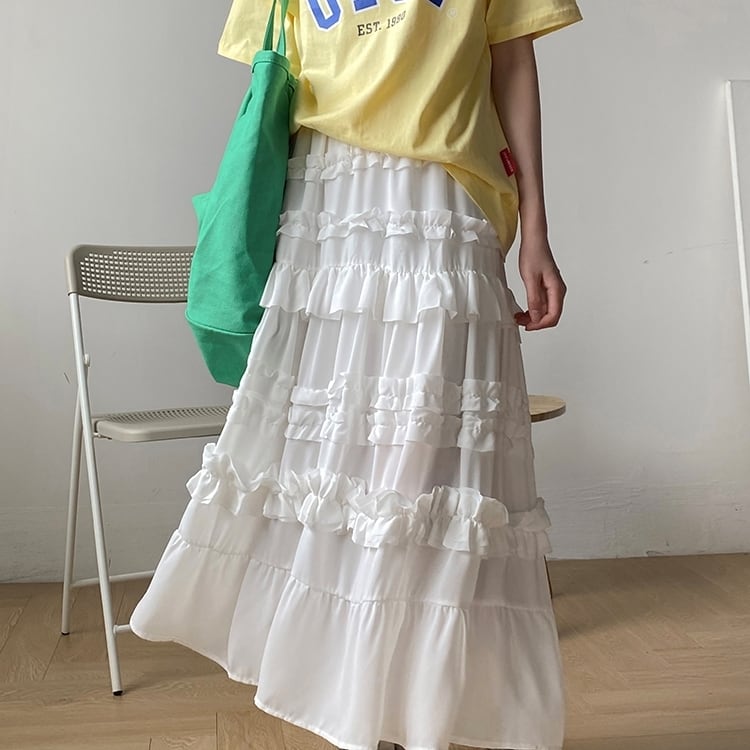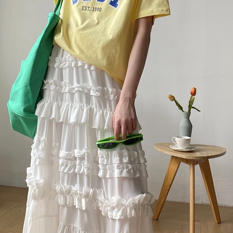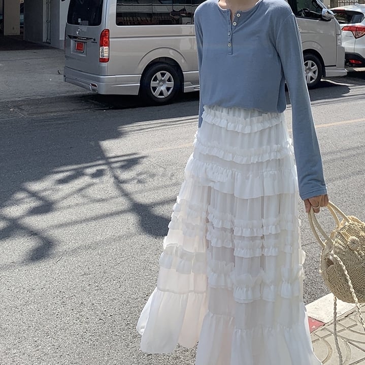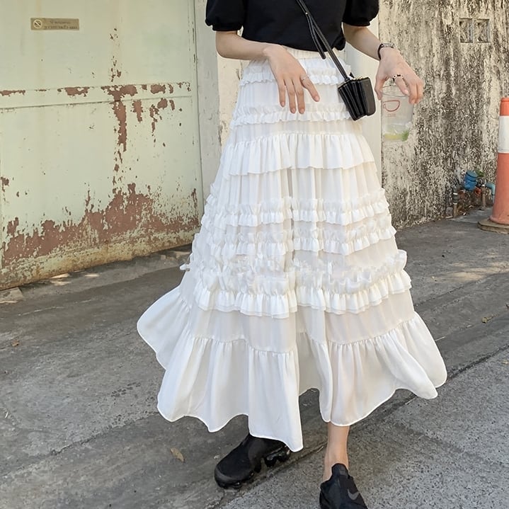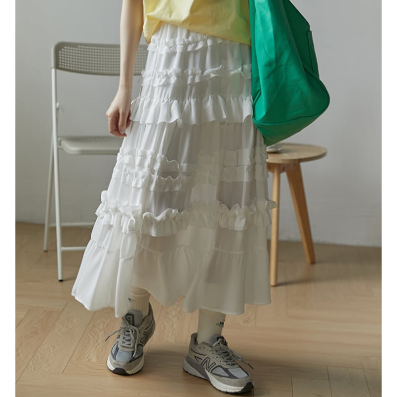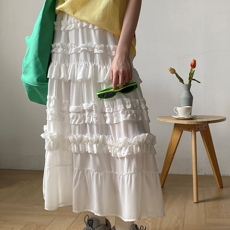 ホイップのような滑らかなティアードレースがロマンティックなロング丈スカート。