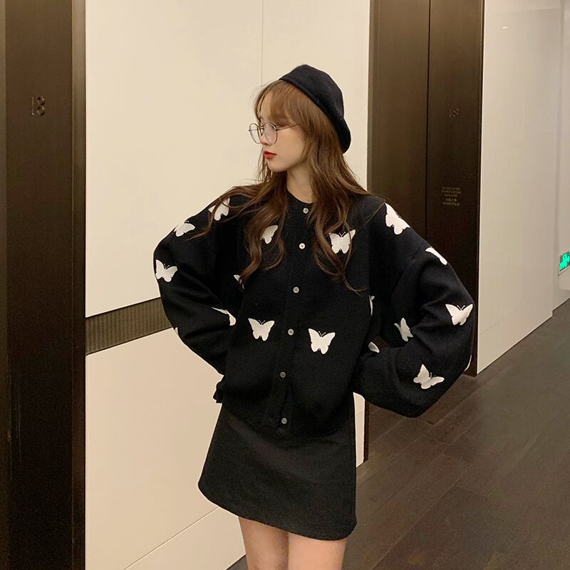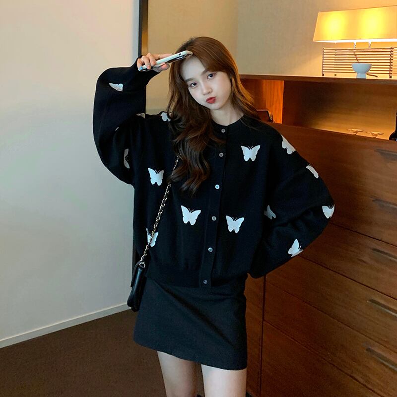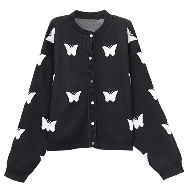 めずらしいバタフライパターンがポイントのニットカーディガン。